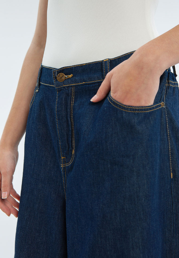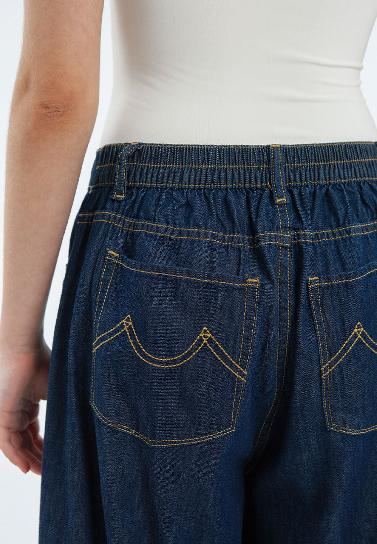 Detail denim pocket, elastic dibagian ban pinggang belakang.