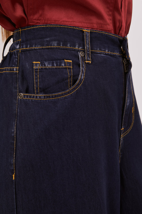 Detail denim pocket, elastic dibagian ban pinggang belakang.