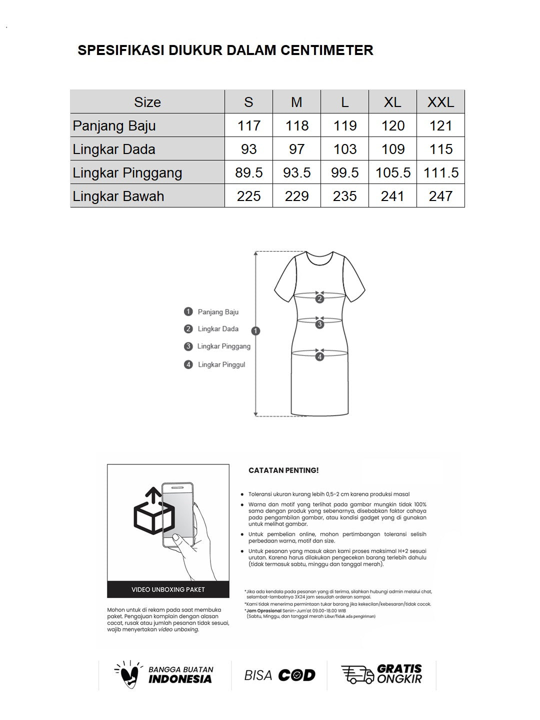 - Untuk pembelian Online, mohon pertimbangkan toleransi selisih perbedaan warna, motif dan size.