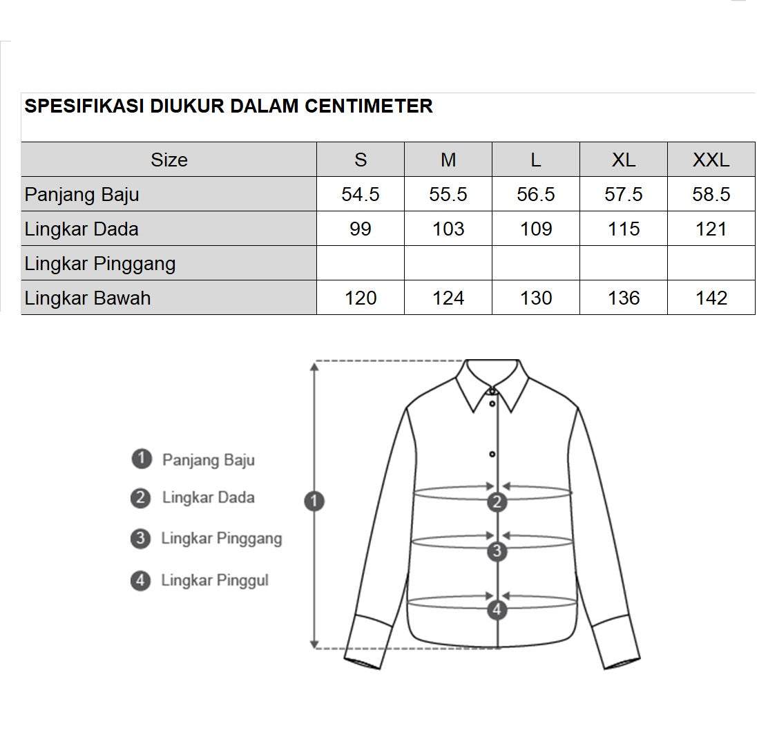 * Size chart dapat dilihat di bagian belakang foto produk *
