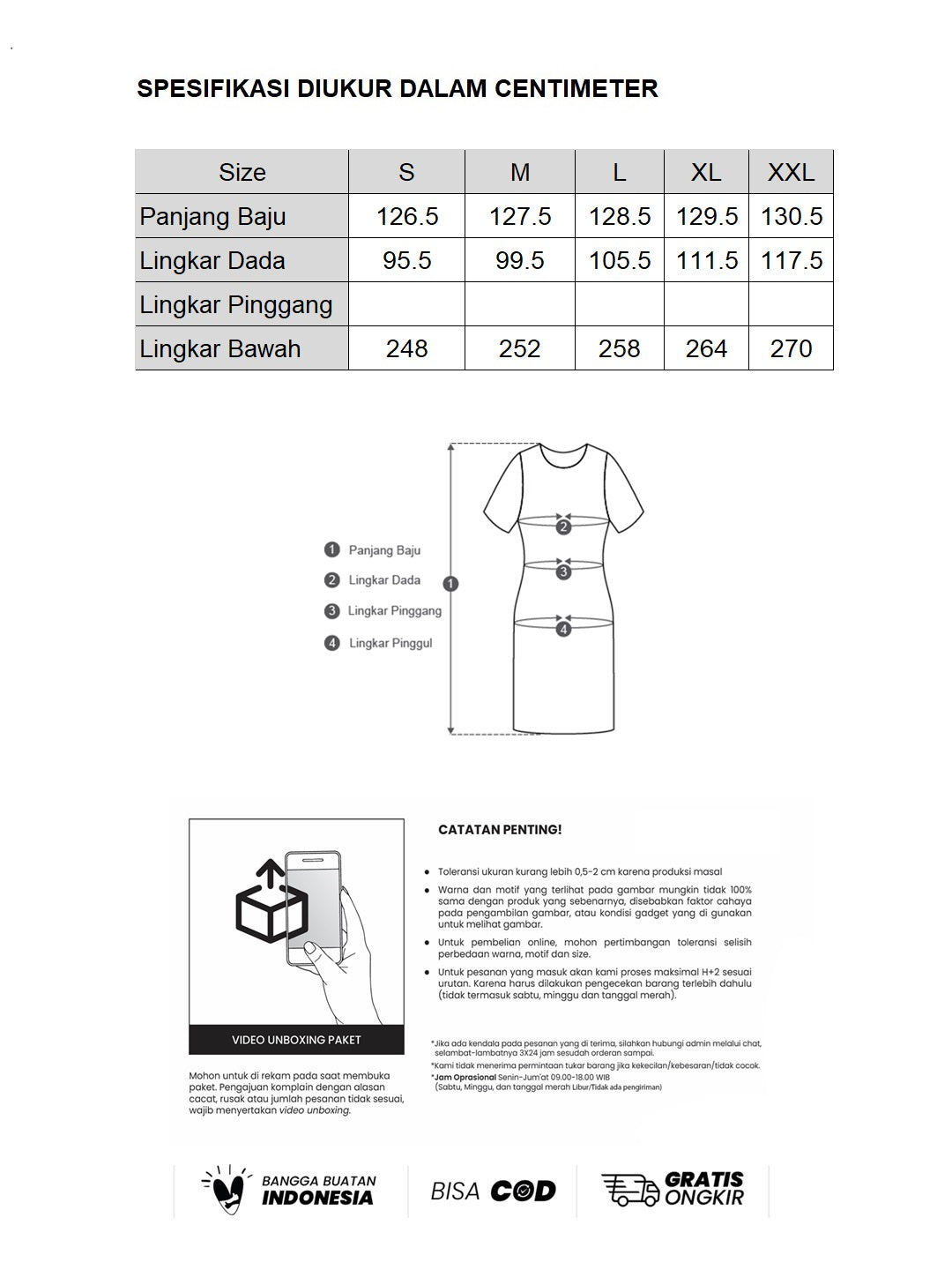 - Untuk pembelian Online, mohon pertimbangkan toleransi selisih perbedaan warna, motif dan size.