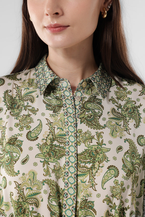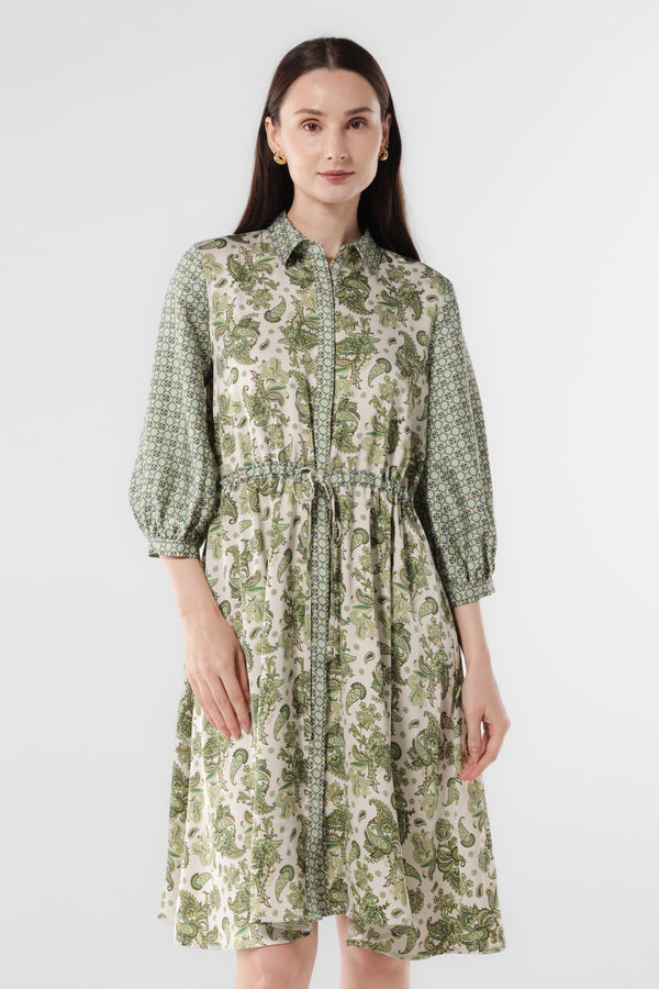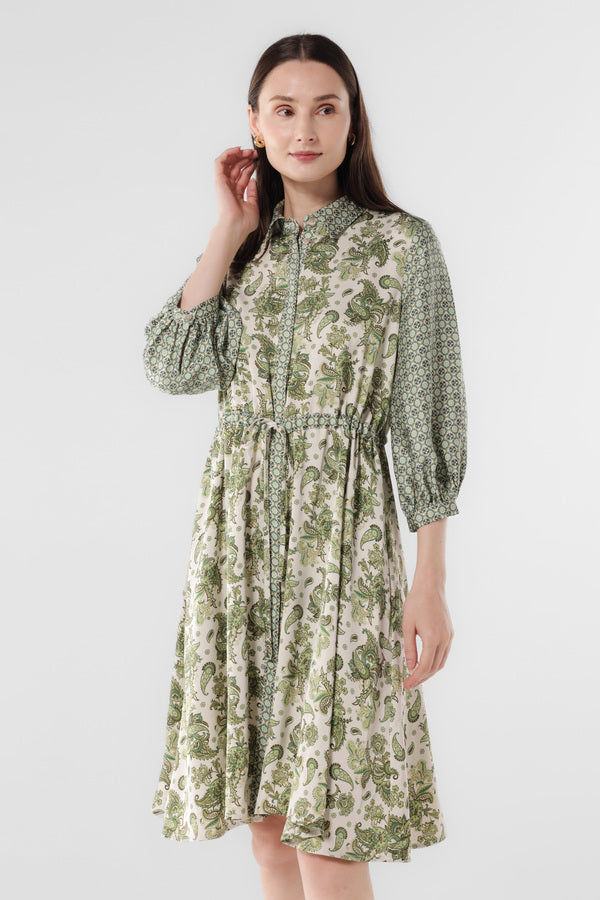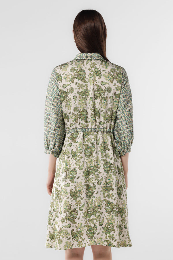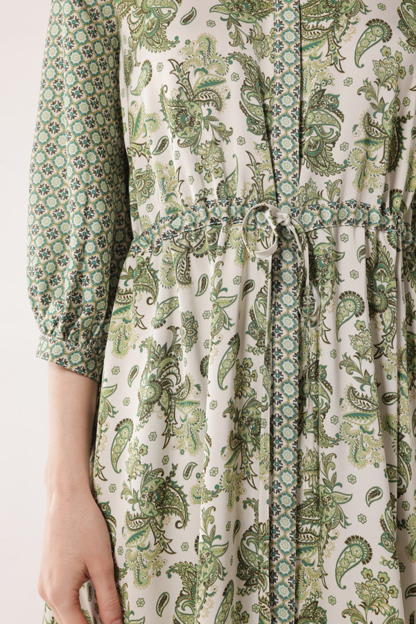 MINIMAL - Mina - Dress Satin Motif Paisley - Green