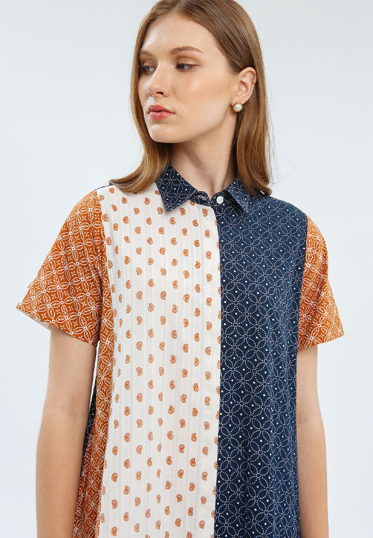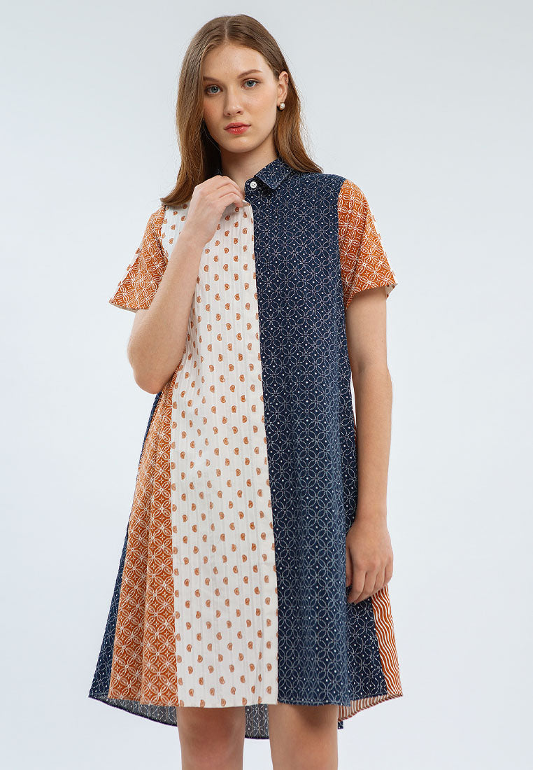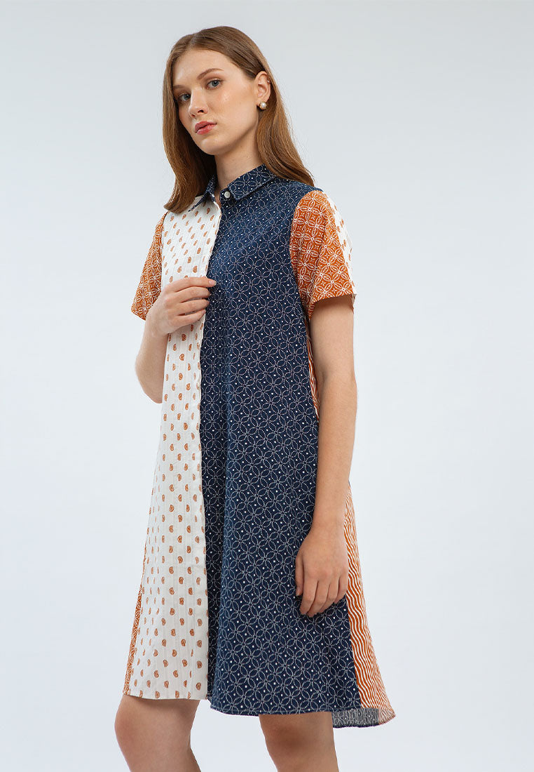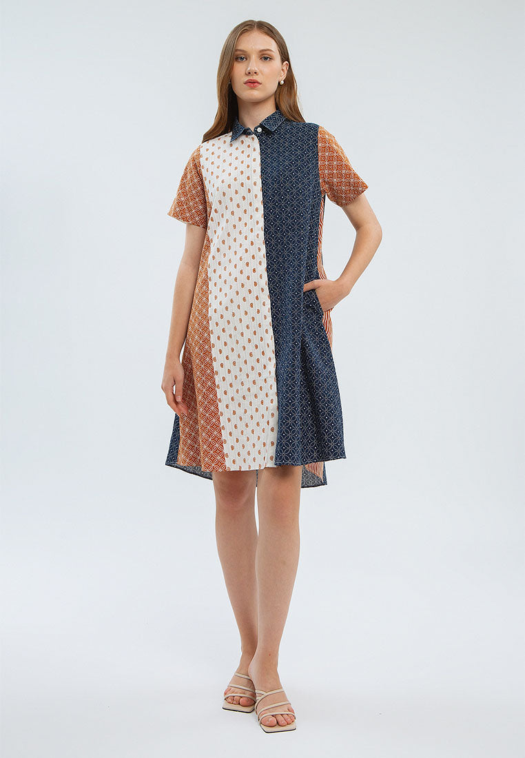 A-LINE SHIRT DRESS DENGAN 3 KOMBINASI WARNA DAN MOTIF