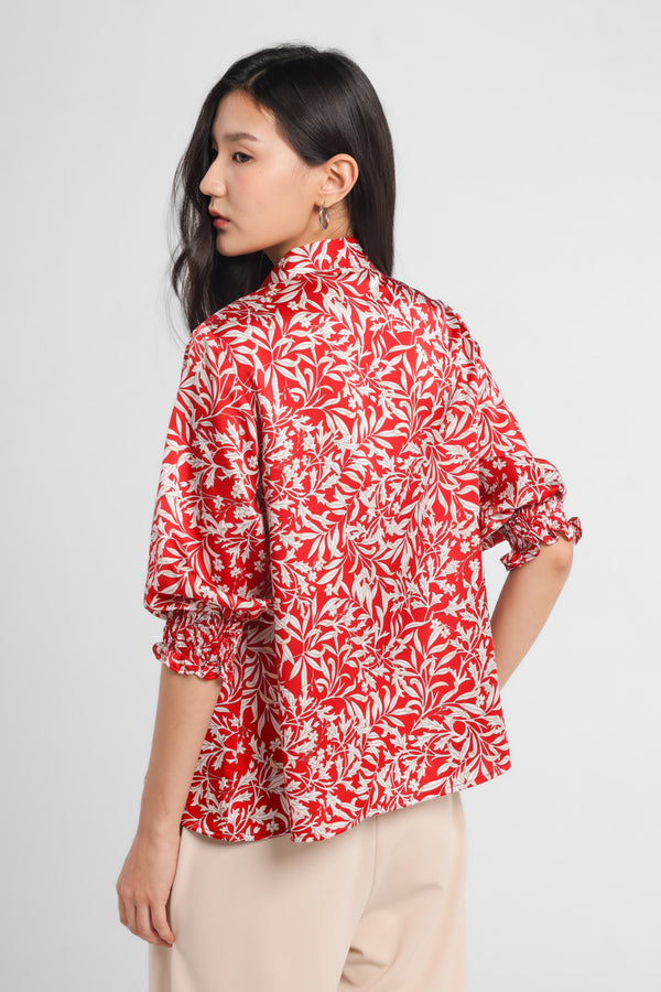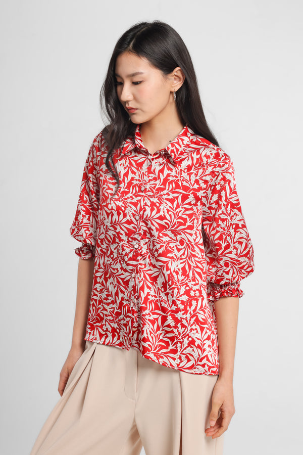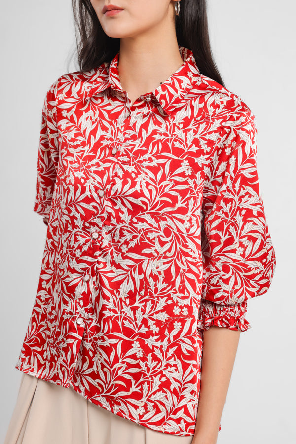 Minimal x Marsha Aruan - Luneth - Kemeja Motif Floral - Red