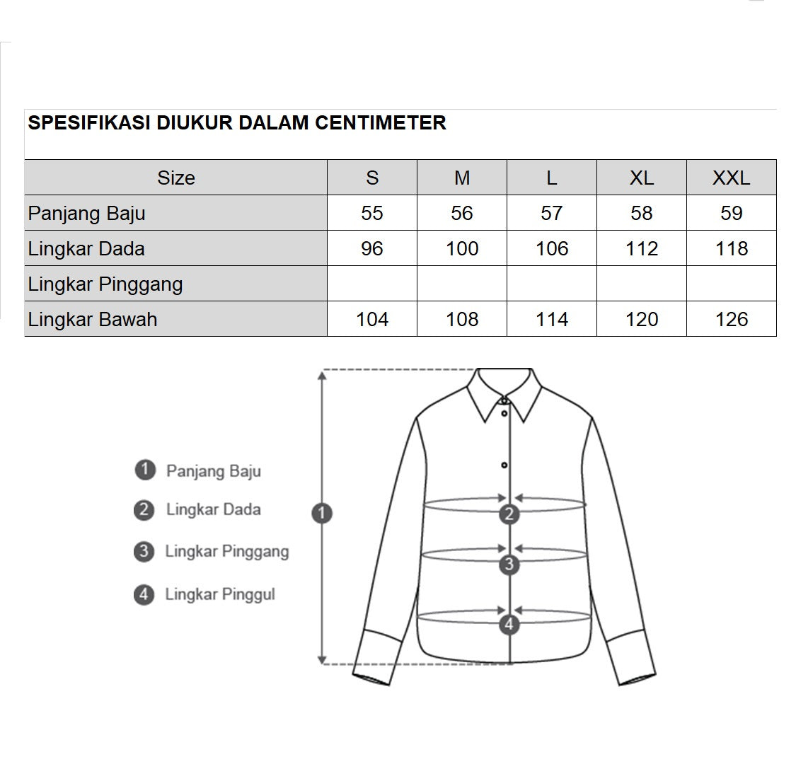 * Size chart dapat dilihat di bagian belakang foto produk *