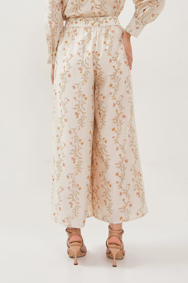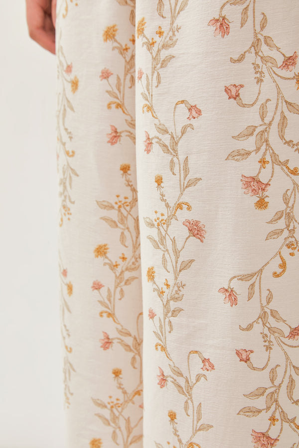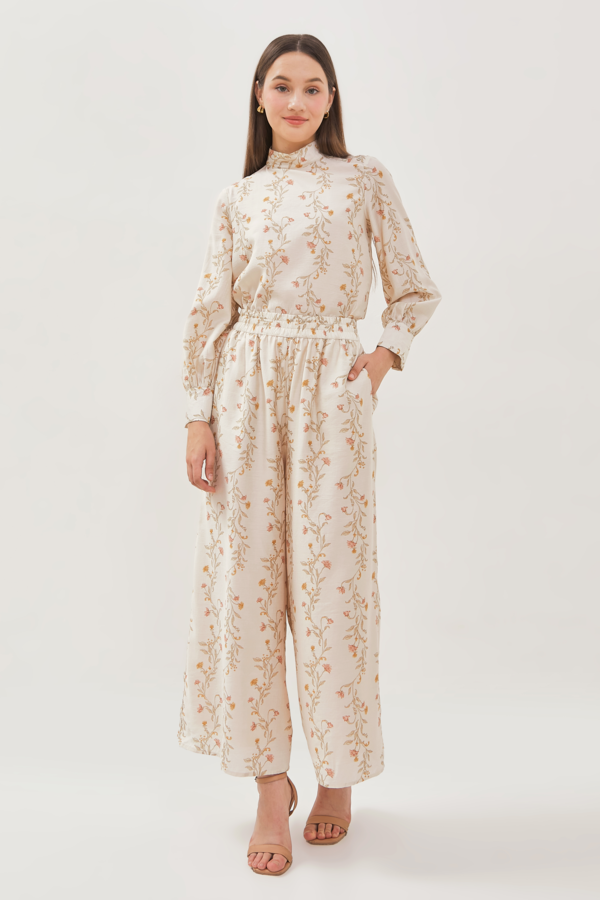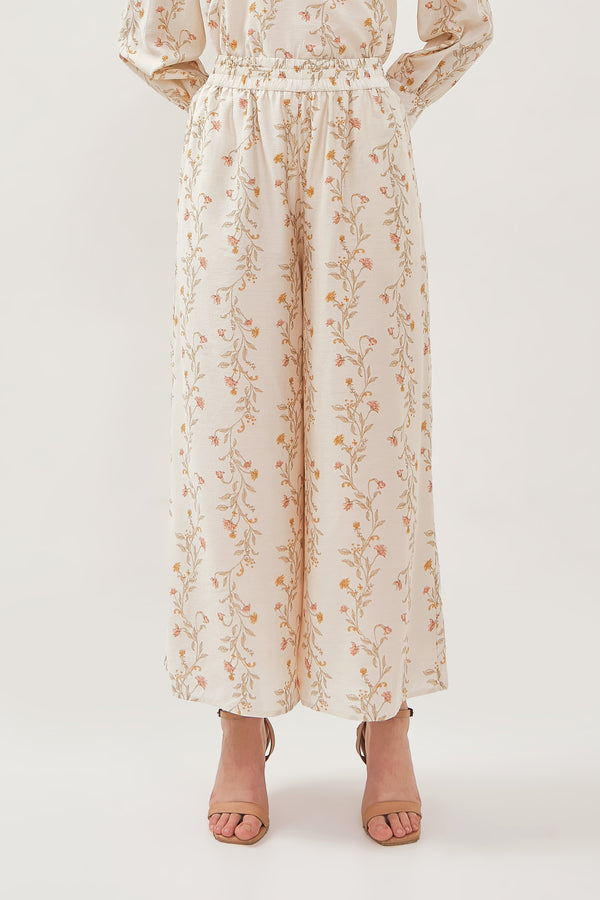 Celana panjang longgar bahan rayon motif bunga dengan karet dipinggang agar nyaman dipakai sehari-hari.