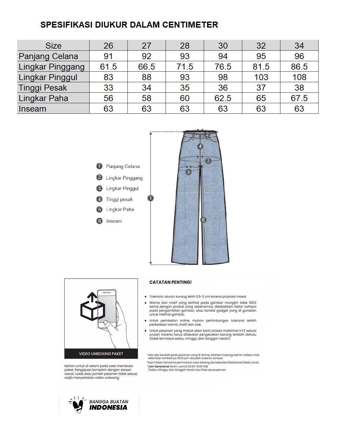 * Size chart dapat dilihat di bagian belakang foto produk *