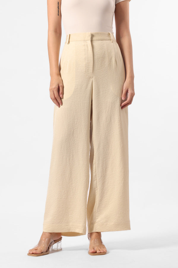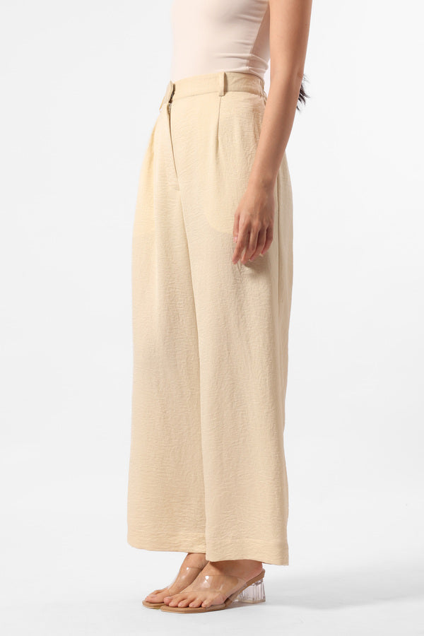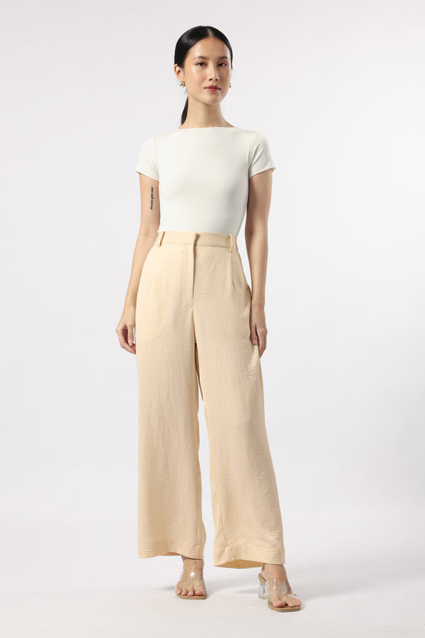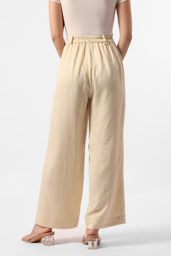 Celana kulot panjang berbahan satin dengan detail kantong samping dan karet pada bagian waistband belakang untuk memberikan kesan nyaman pada saat dipakai.