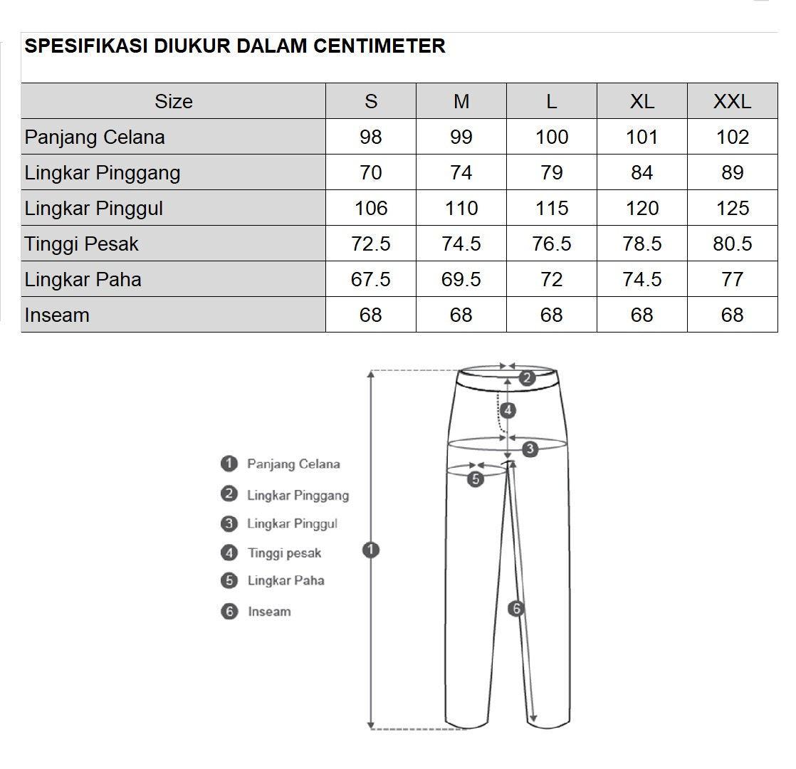 * Size chart dapat dilihat di bagian belakang foto produk *