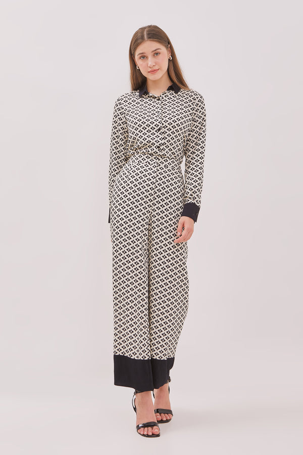 Celana bermotif geometris dengan bahan rayon blend bertekstur yang adem yang berkesan kasual, terdapat pairing match kemeja dijual terpisah untuk gaya yang lebih trendy dan elegan