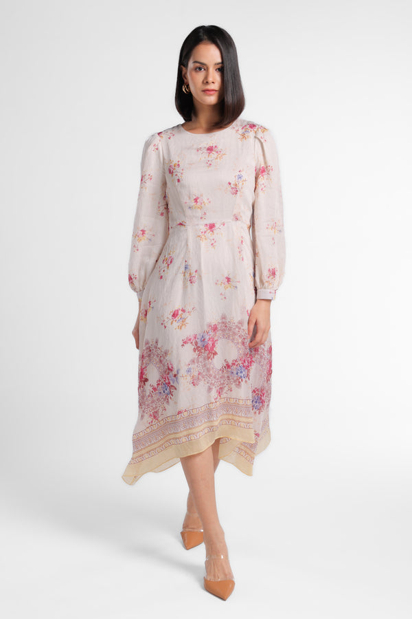 MINIMAL - Clematis - Gamis Motif Floral Border Bawah - Beige