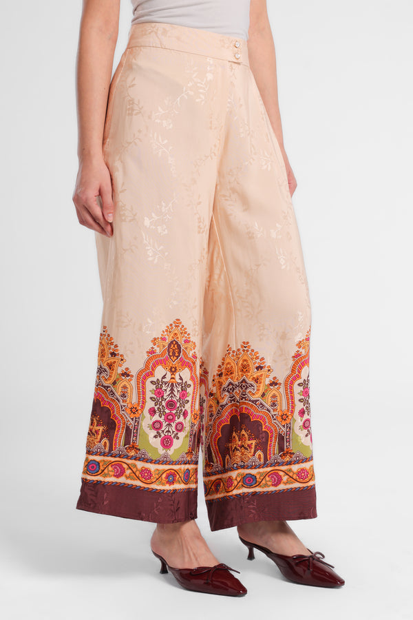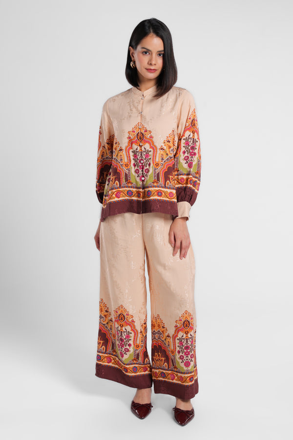 Celana lengan panjang bahan satin polyester yang jatuh dan nyaman dipakai. Dibuat dari motif special bunga dengan warna cerah yang mewah. Celana ini dapat dipakai untuk acara formal Lebaran.