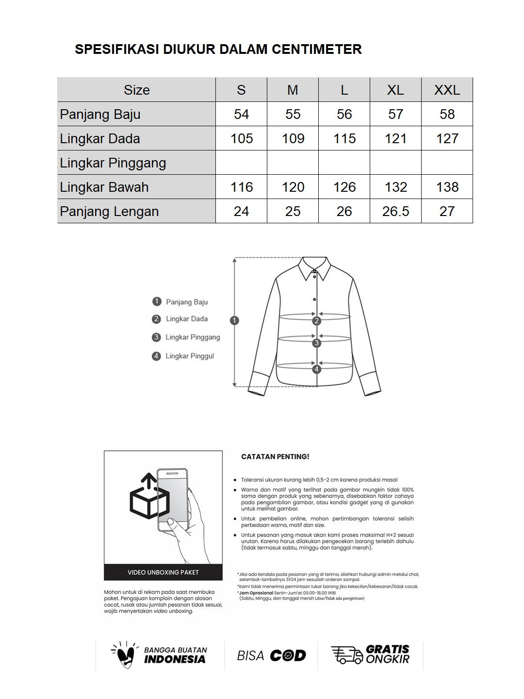 - Untuk pembelian Online, mohon pertimbangkan toleransi selisih perbedaan warna, motif dan size.