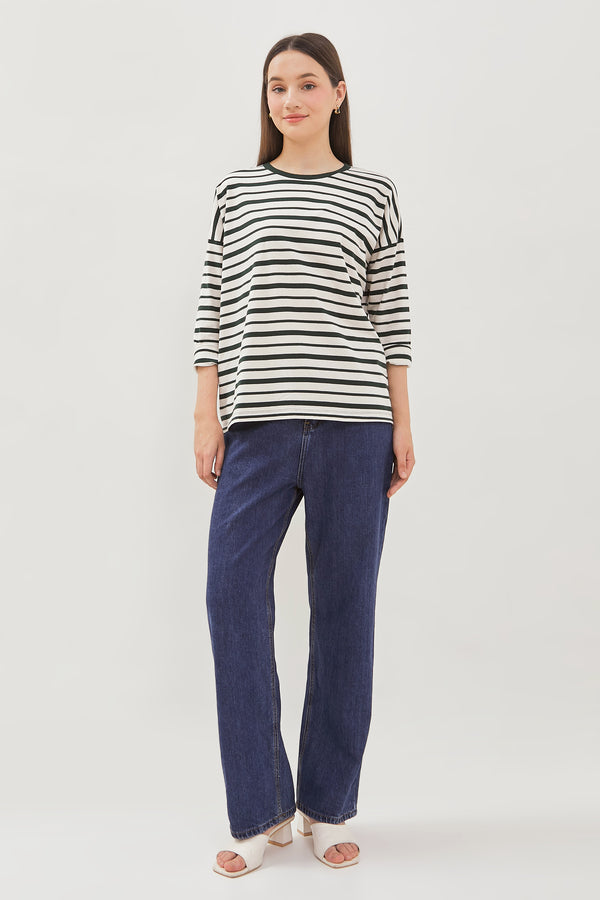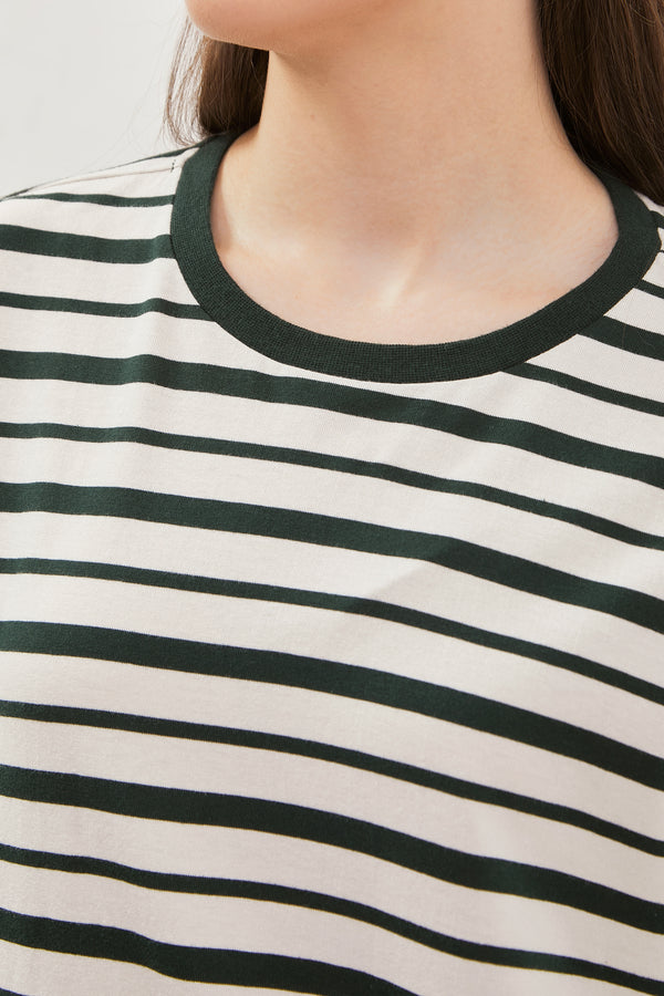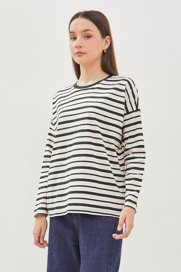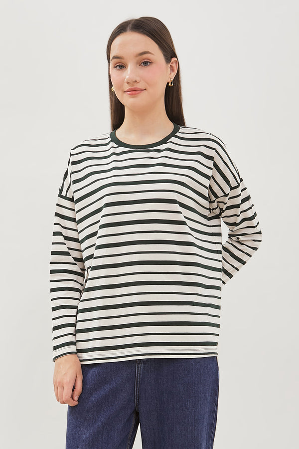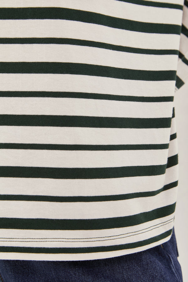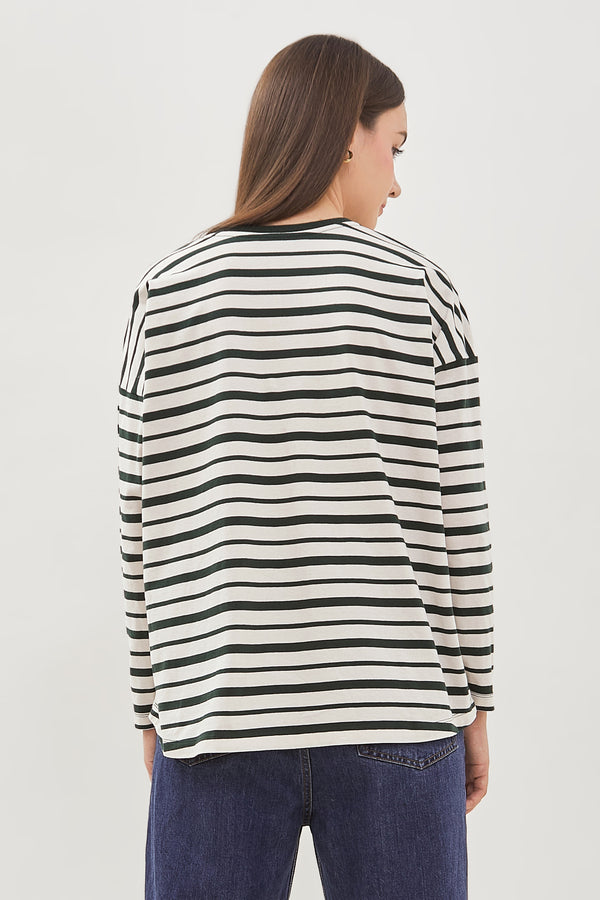T-shirt lengan panjang motif garis dengan desain crew neck serbaguna. Siluet rileks yang stylish dengan ukuran hem yang lebih panjang di bagian belakang. Bahan berkontur untuk fit yang nyaman.