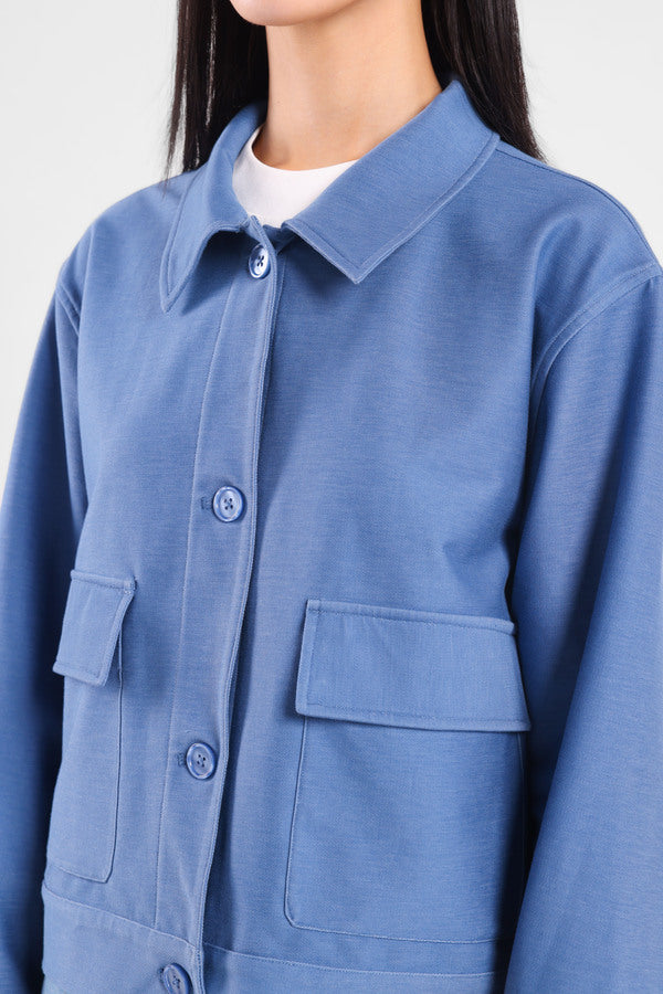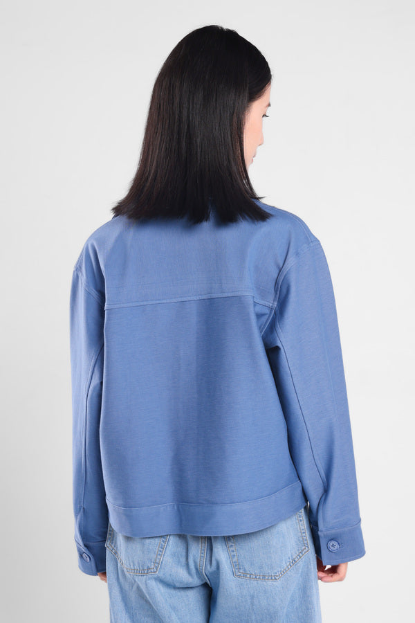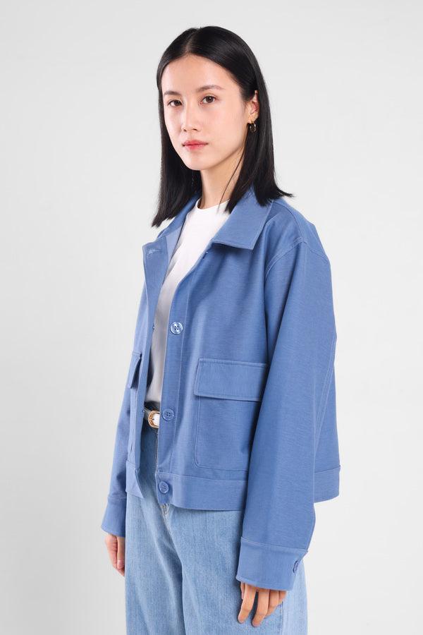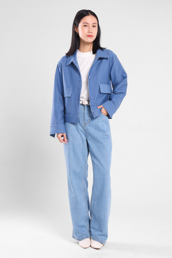 Jaket rileks dengan bukaan kancing depan dan terdapat dua kantong yang memberi kesan elegant.