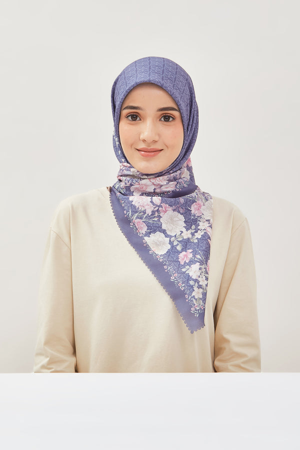 Hijab printing dengan motif exclusive yang bernuansa bunga, dengan perpaduan warna yang lembut yang menyatu dengan warna dasar, sehingga memberi kesan clean dan elegan saat dipakai.