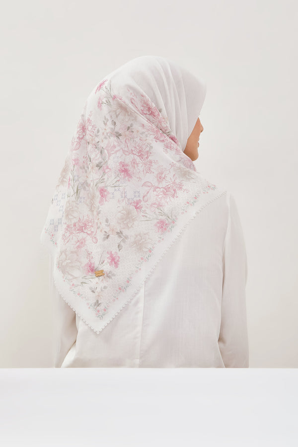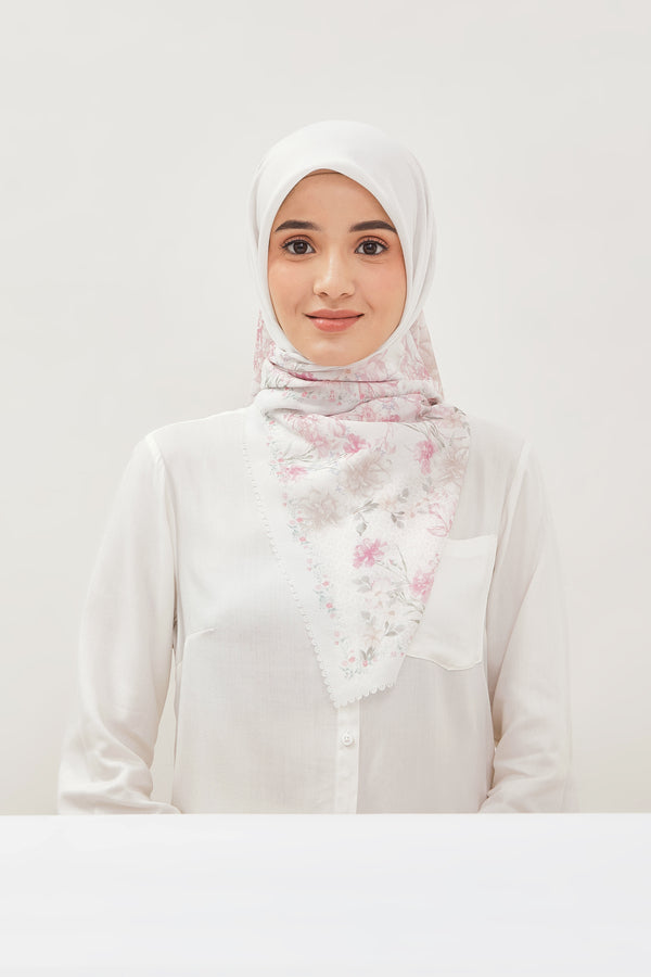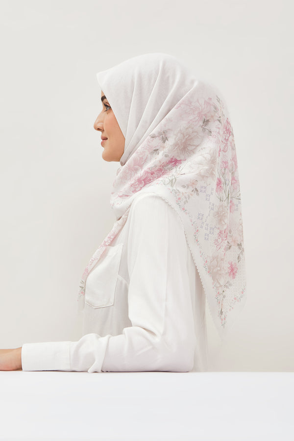 Hijab printing dengan motif exclusive yang bernuansa bunga, dengan perpaduan warna yang lembut yang menyatu dengan warna dasar, sehingga memberi kesan clean dan elegan saat dipakai.