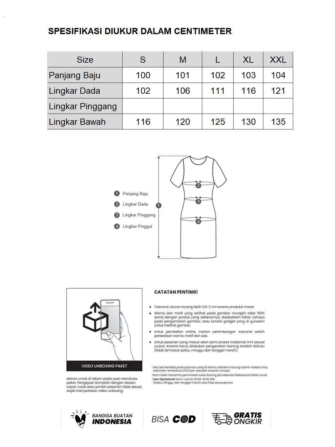 - Untuk pembelian Online, mohon pertimbangkan toleransi selisih perbedaan warna, motif dan size.