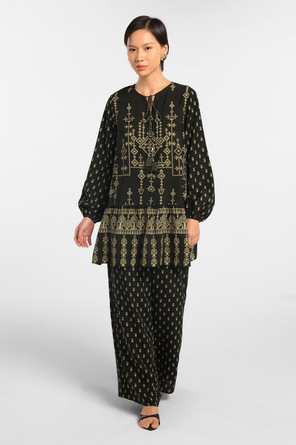 Celana Panjang Printed dengan motif Eksklusif dirancang dalam komposisi warna Green Dark lembut. Menciptakan tampilan Lebaran terlihat minimal dan rapih. Siluetnya clean dan modern, menjadikan celana ini nyaman dipakai sebagai satu set maupun dipadukan dengan atasa polos