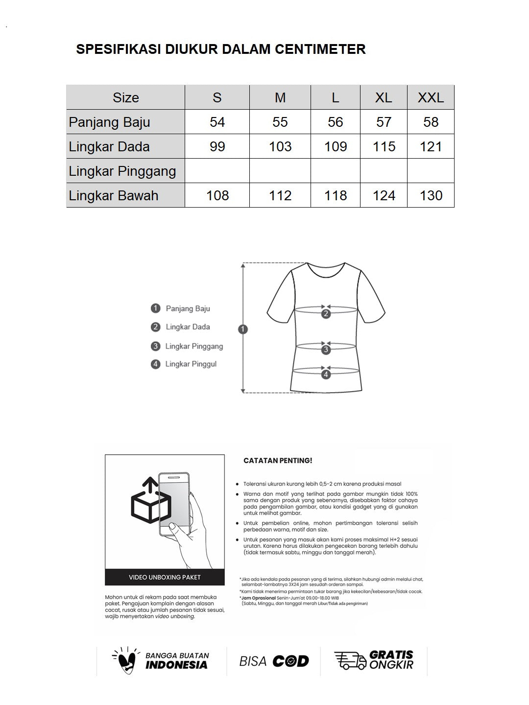 - Untuk pembelian Online, mohon pertimbangkan toleransi selisih perbedaan warna, motif dan size.