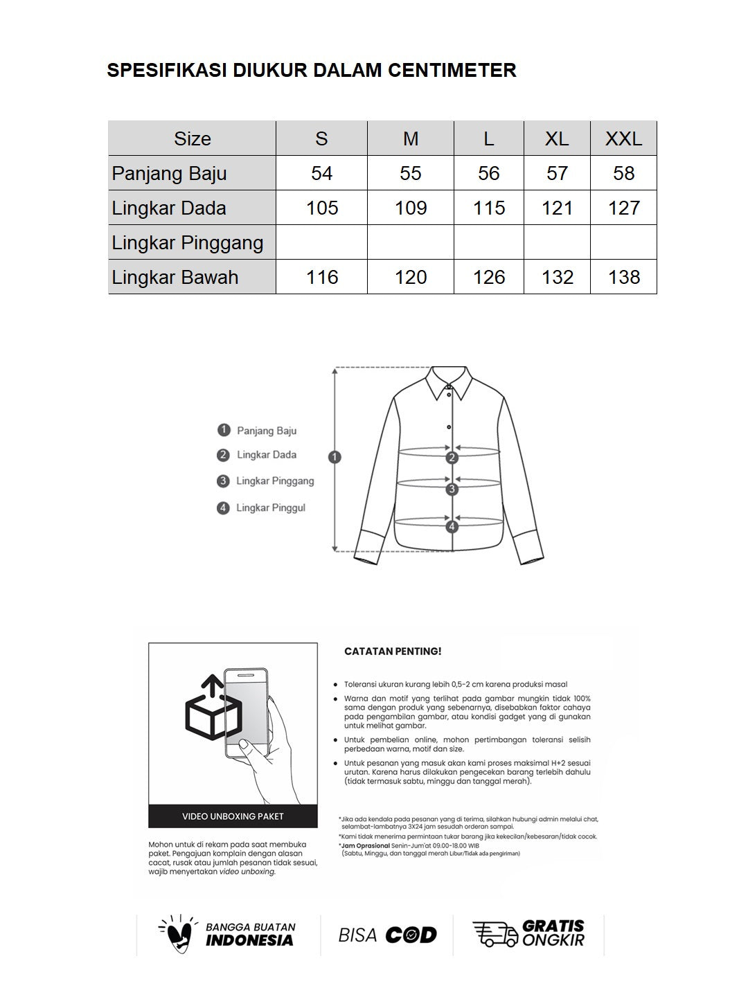 - Untuk pembelian Online, mohon pertimbangkan toleransi selisih perbedaan warna, motif dan size.