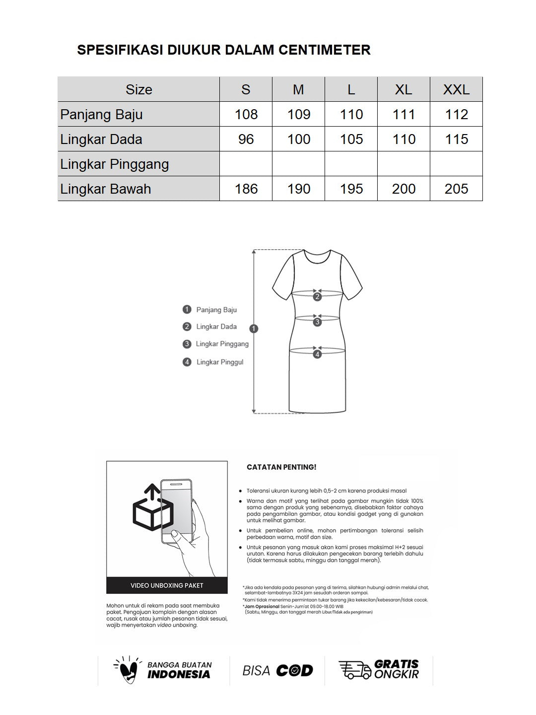- Untuk pembelian Online, mohon pertimbangkan toleransi selisih perbedaan warna, motif dan size.