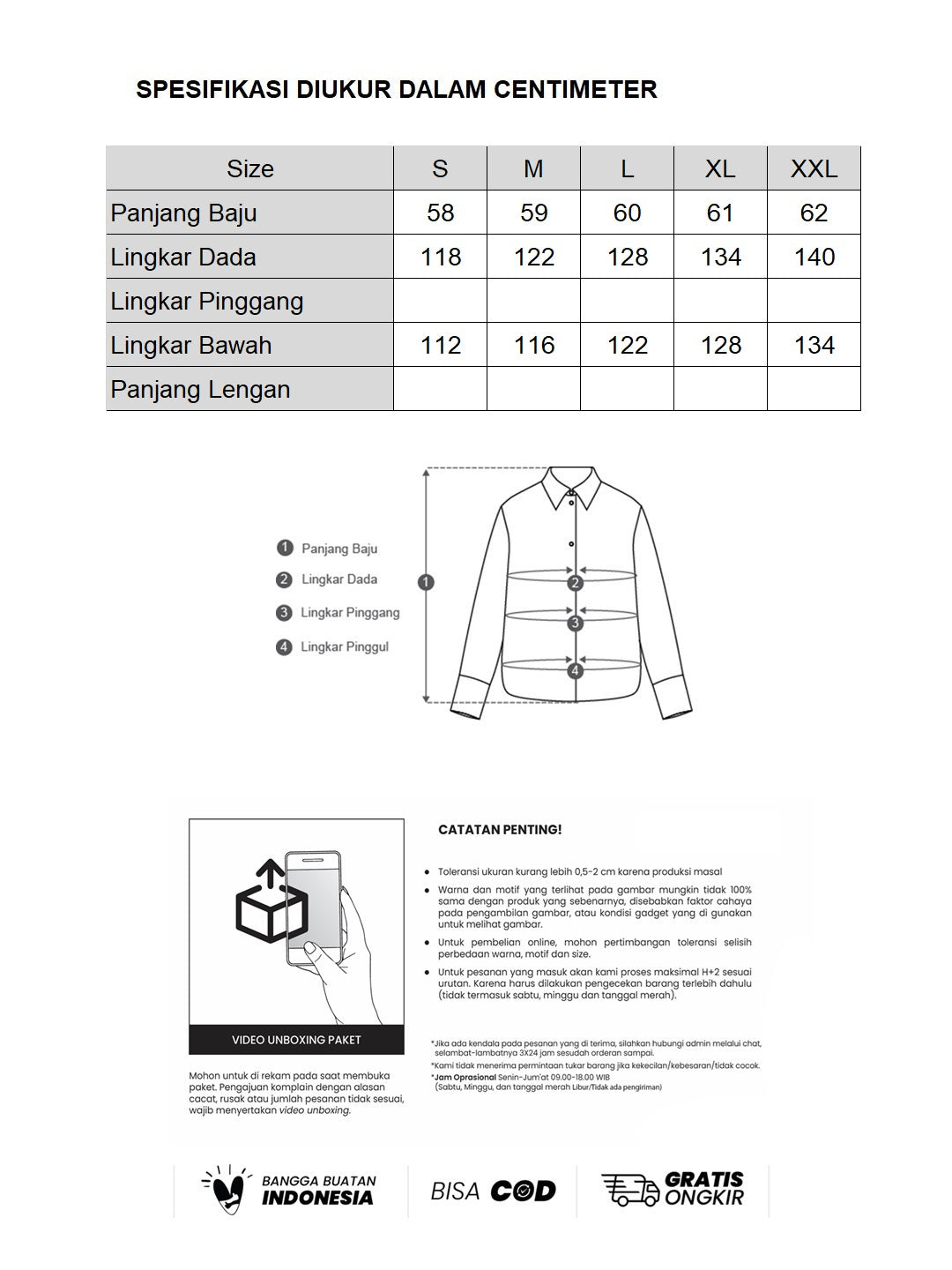 - Maaf, kami tidak menerima tukar size/barang karena kekecilan/kebesaran/tidak cocok.