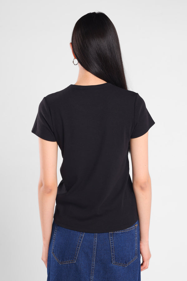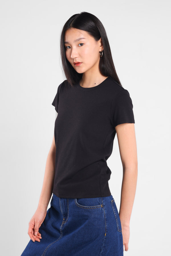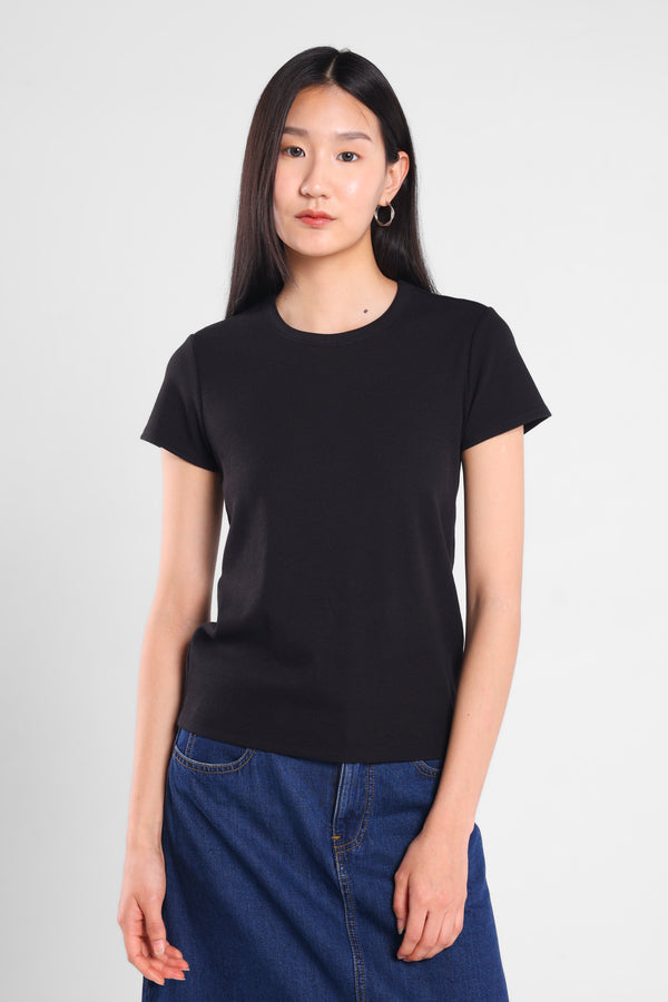 T-shirt berbahan campuran katun dengan tekstur alami yang lembut. Siluet yang pas dengan detail ramping, cocok untuk gaya kasual, sporty, ataupun gaya yang lebih elegan. T-shirt dengan lengan pendek, neckline dibuat dengan bahan yang senada agar mudah dipadupadankan.