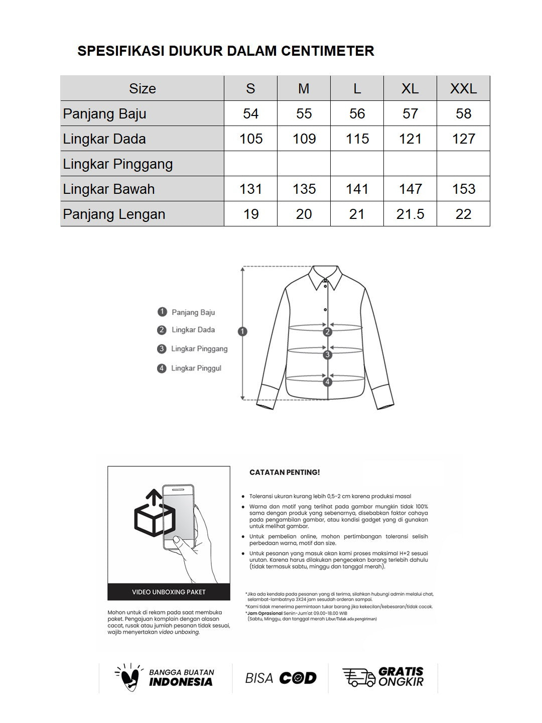 - Untuk pembelian Online, mohon pertimbangkan toleransi selisih perbedaan warna, motif dan size.