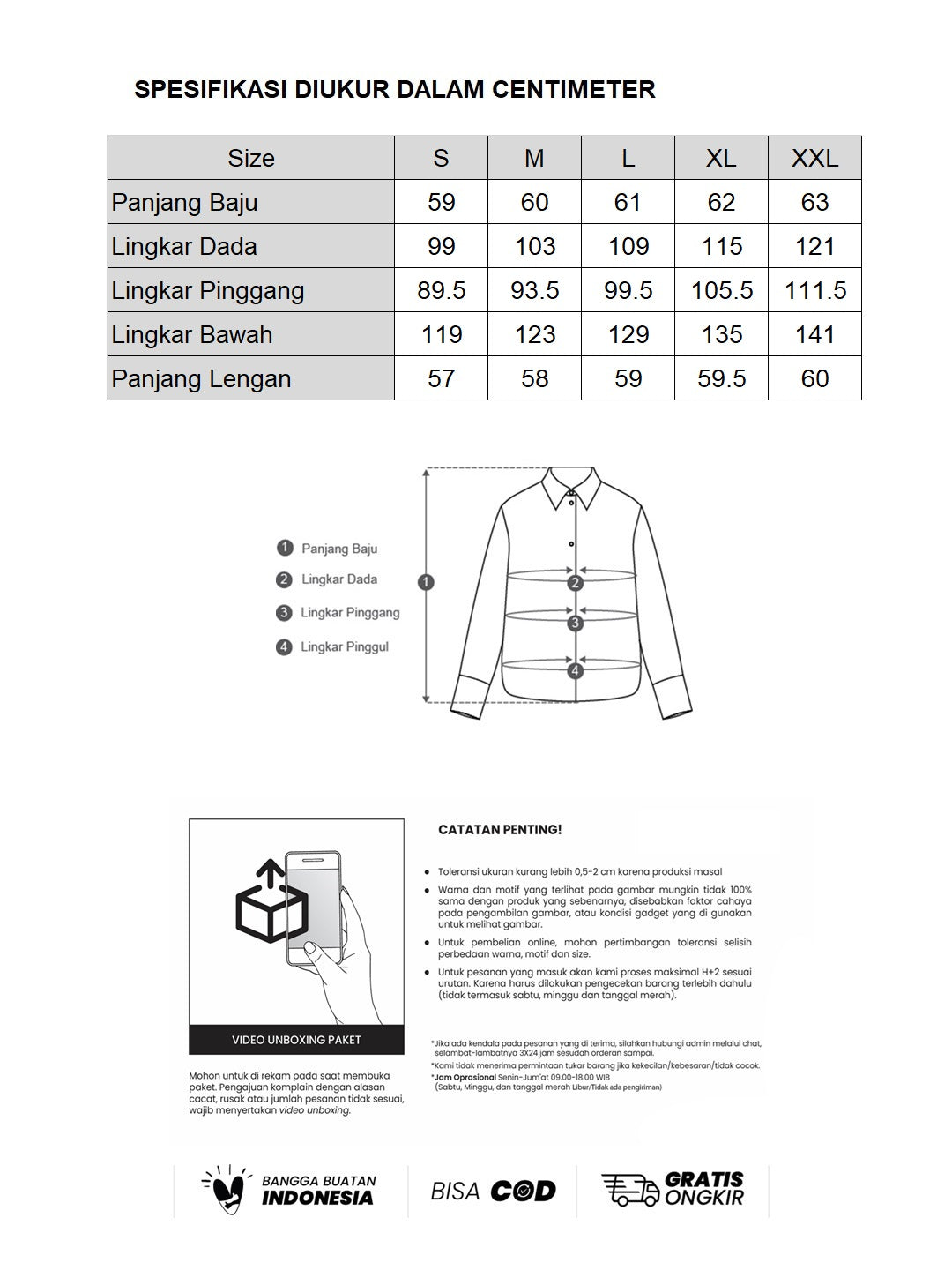 - Untuk pembelian Online, mohon pertimbangkan toleransi selisih perbedaan warna, motif dan size.