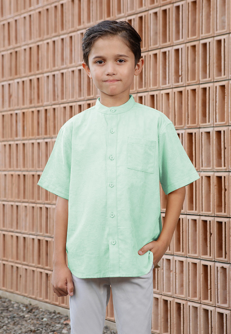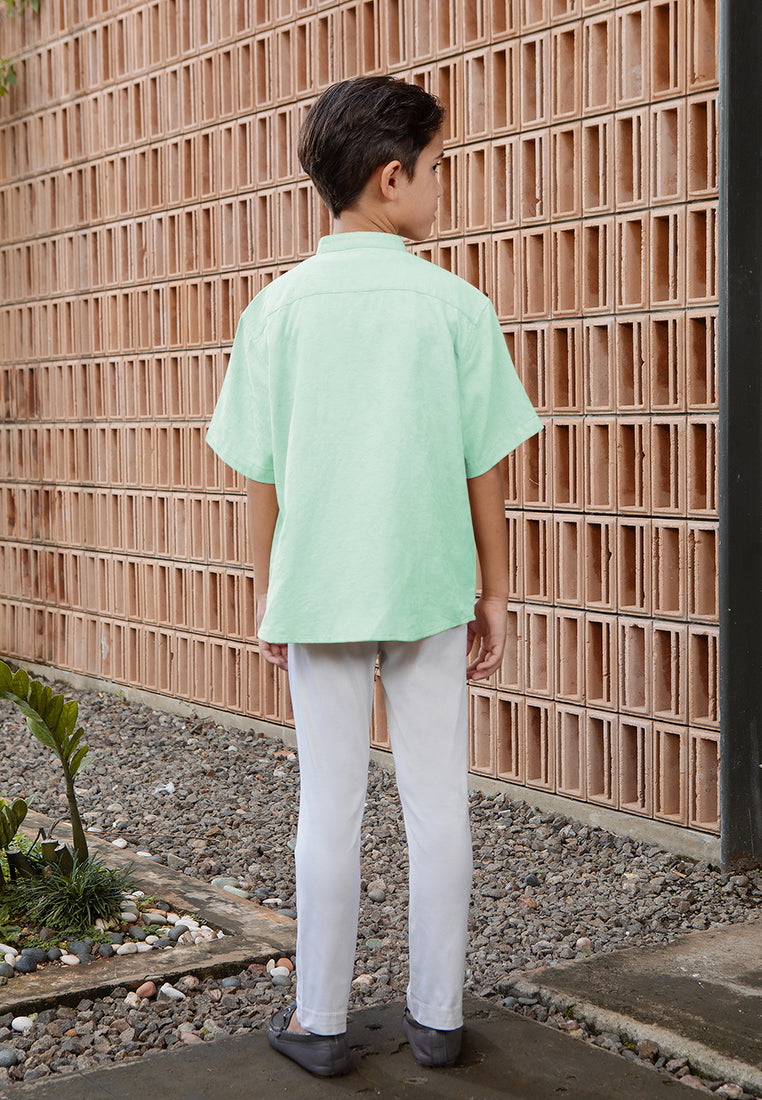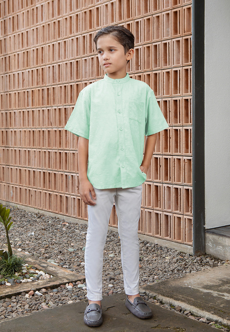 MANZONE - Aqara SS Junior - Kemeja Koko Shanghai Anak Lengan Pendek - Green Light - Rezky Aditya & Citra Kirana for Manzone & Minimal