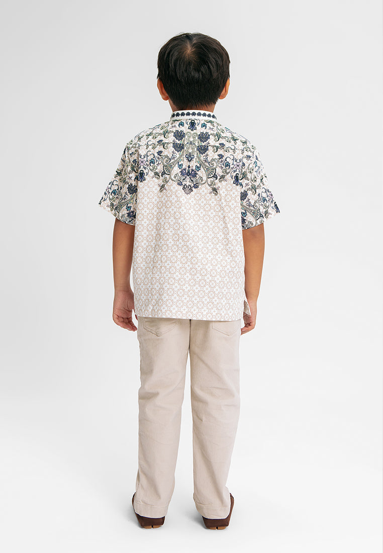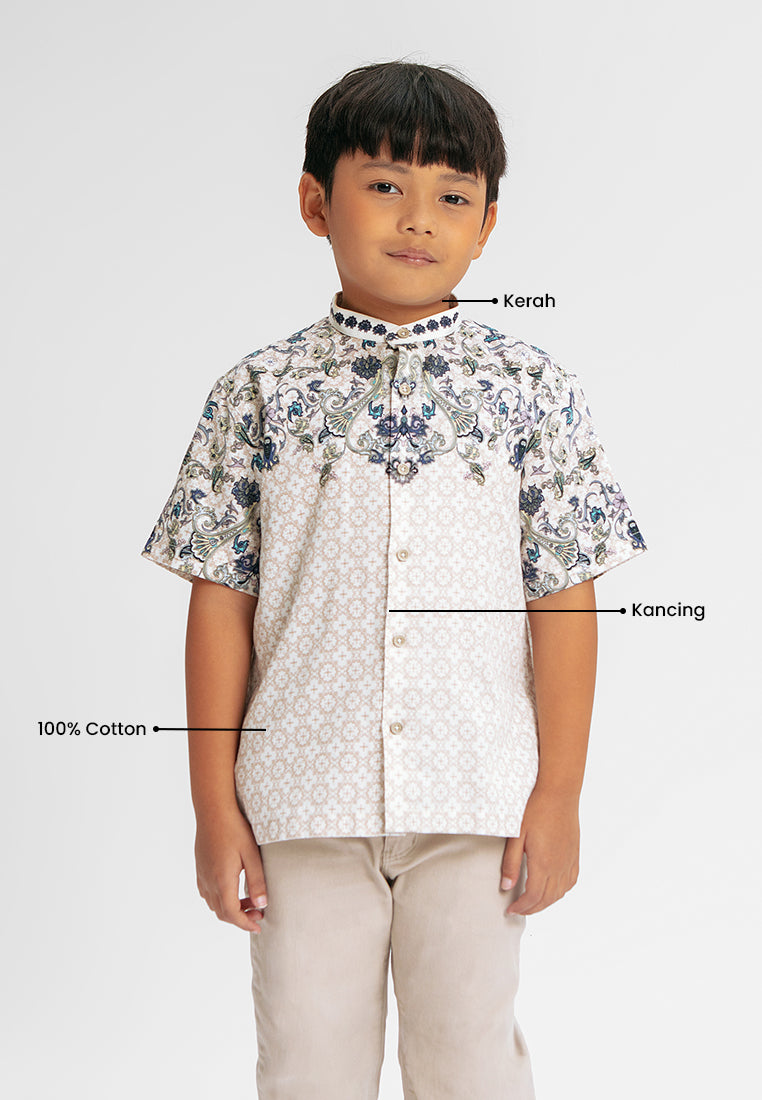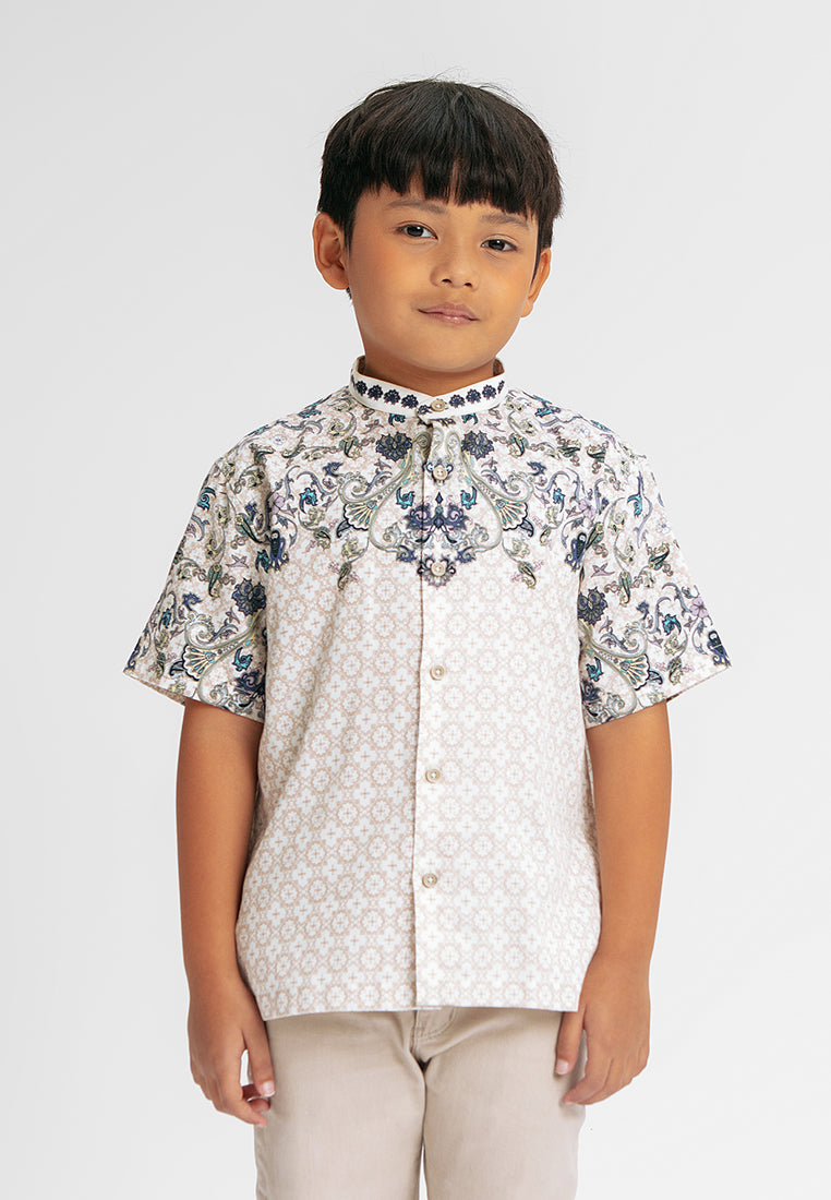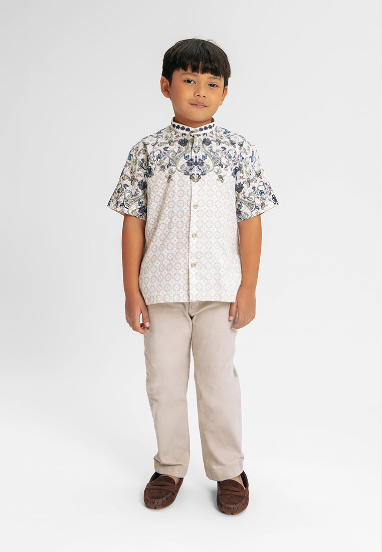 MANZONE - Gadiel SS Junior - Kemeja Koko Shanghai Anak Lengan Pendek - White - Rezky Aditya & Citra Kirana for Manzone & Minimal