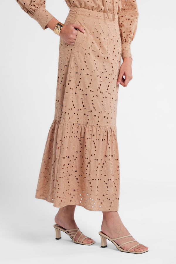 Minimal x Tasya Farasya - Aspen - Rok Midi Cotton Eyelet - Beige