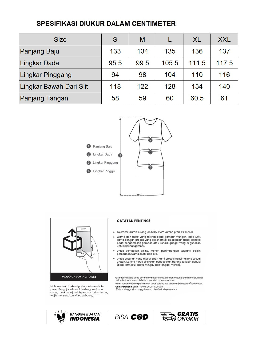 - Maaf, kami tidak menerima tukar size/barang karena kekecilan/kebesaran/tidak cocok.