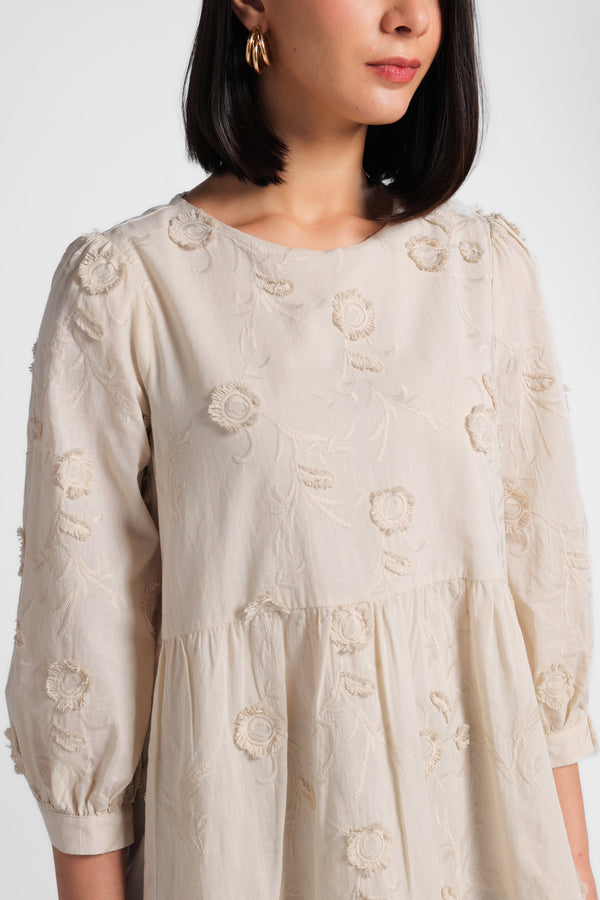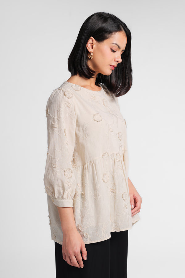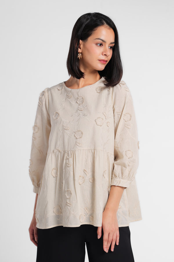 Minimal x Tasya Farasya - Merida - Peplum Loose Blus 3D Embroidery - Beige