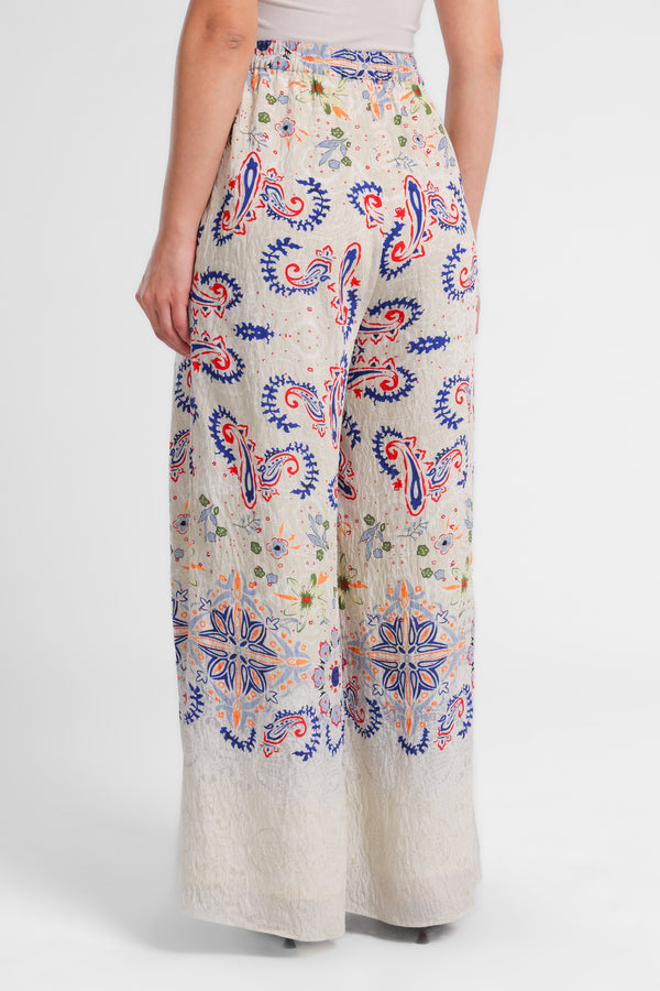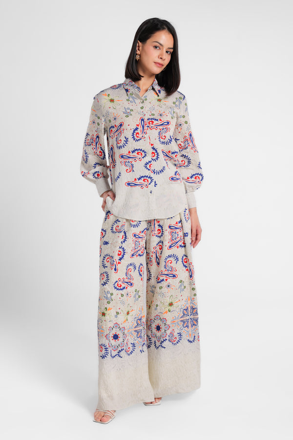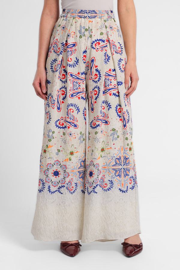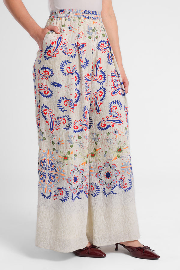 Celana Panjang dengan Motif Paisley Gradasi yang dirancang dalam komposisi warna Beige. Menciptakan tampilan Lebaran terlihat minimal dan rapih. Siluetnya clean dan modern, menjadikan celana ini nyaman dipakai sebagai satu set maupun dipadukan dengan atasa polos