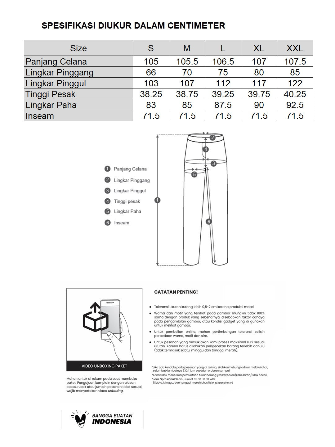 * Size chart dapat dilihat di bagian belakang foto produk *