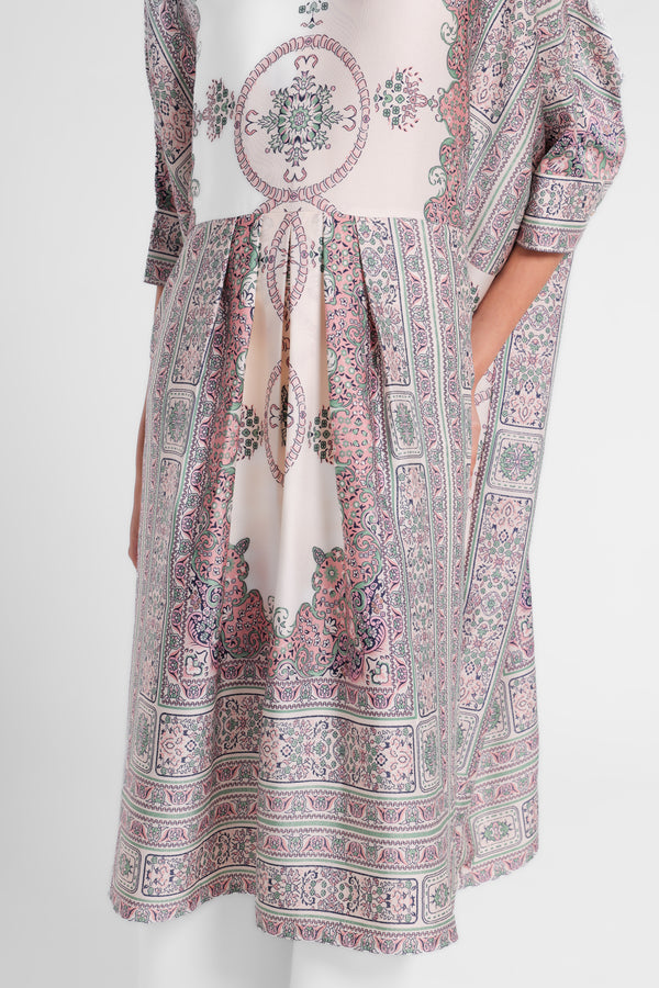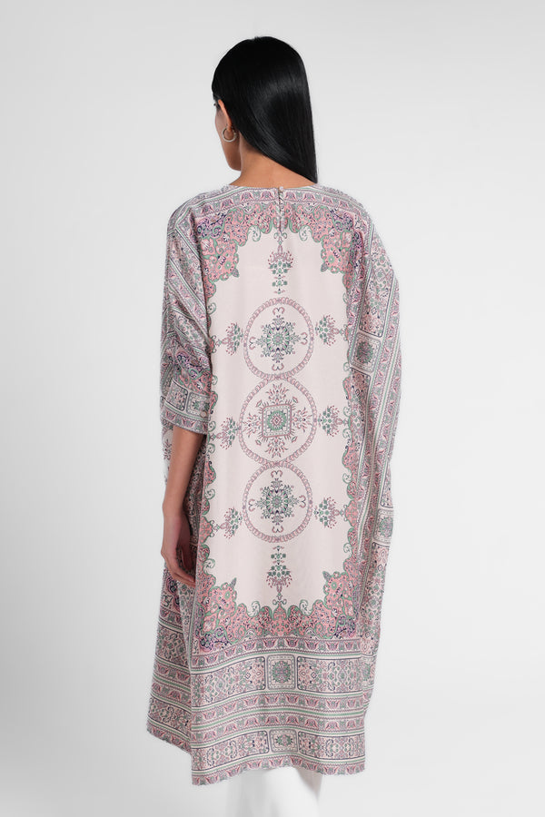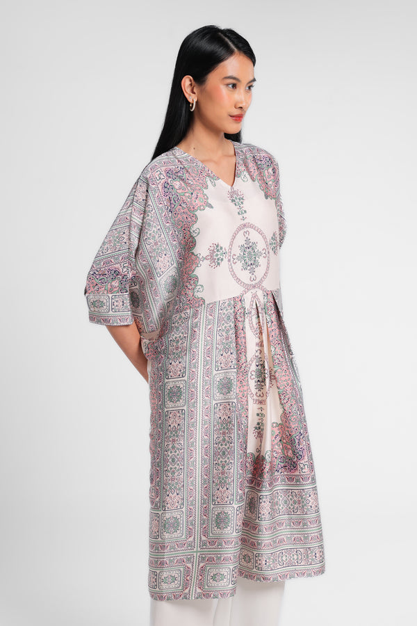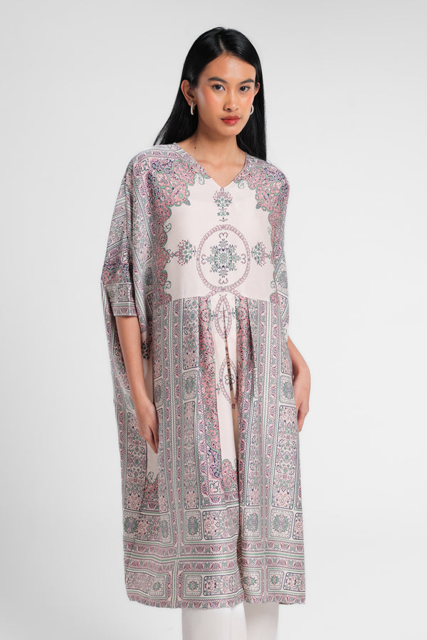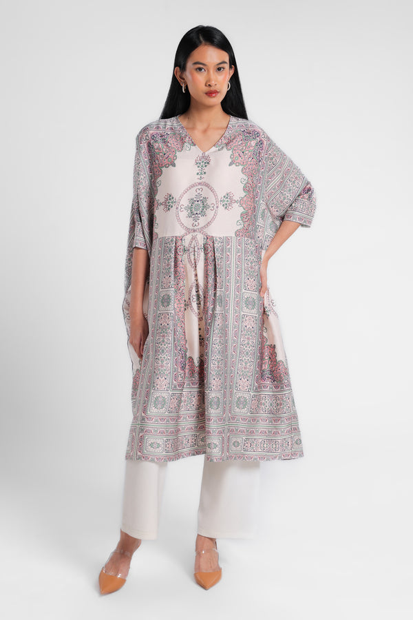 Kaftan panjang bahan satin polyester yang jatuh dan nyaman dipakai. Dibuat dari motif special pasley kombinasi bunga dengan warna pastel yang mewah. Kaftan ini dapat dipakai untuk acara formal Lebaran.